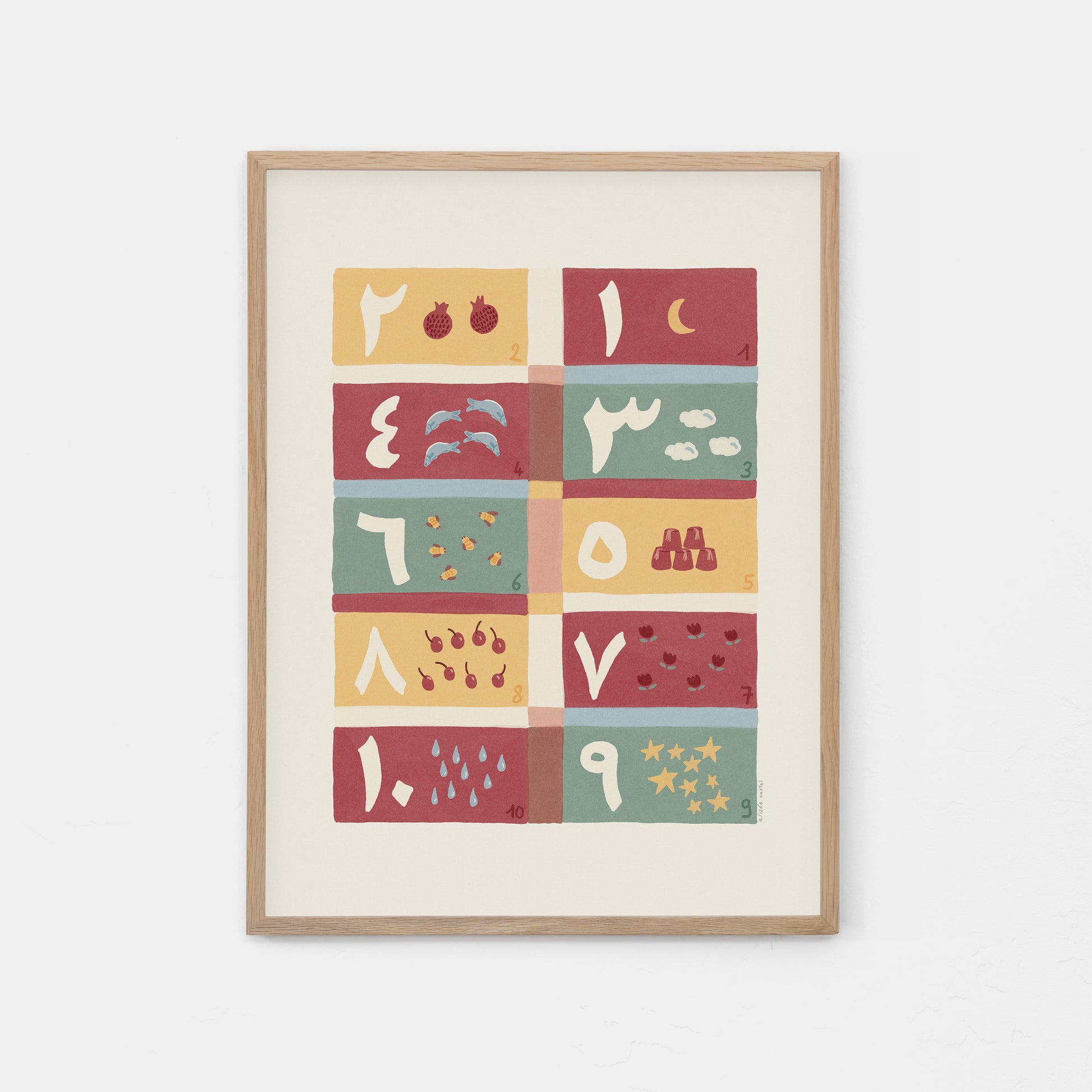 Comptez en arabe, comptez avec amour. Ce joyeux imprimé de chiffres aide les enfants à se connecter à leur héritage tout en égayant la chambre ou le coin de la classe.