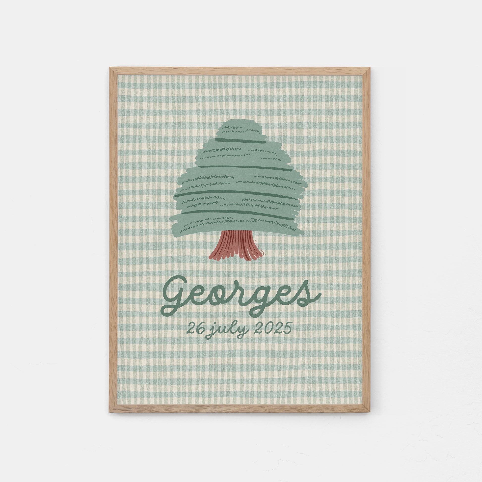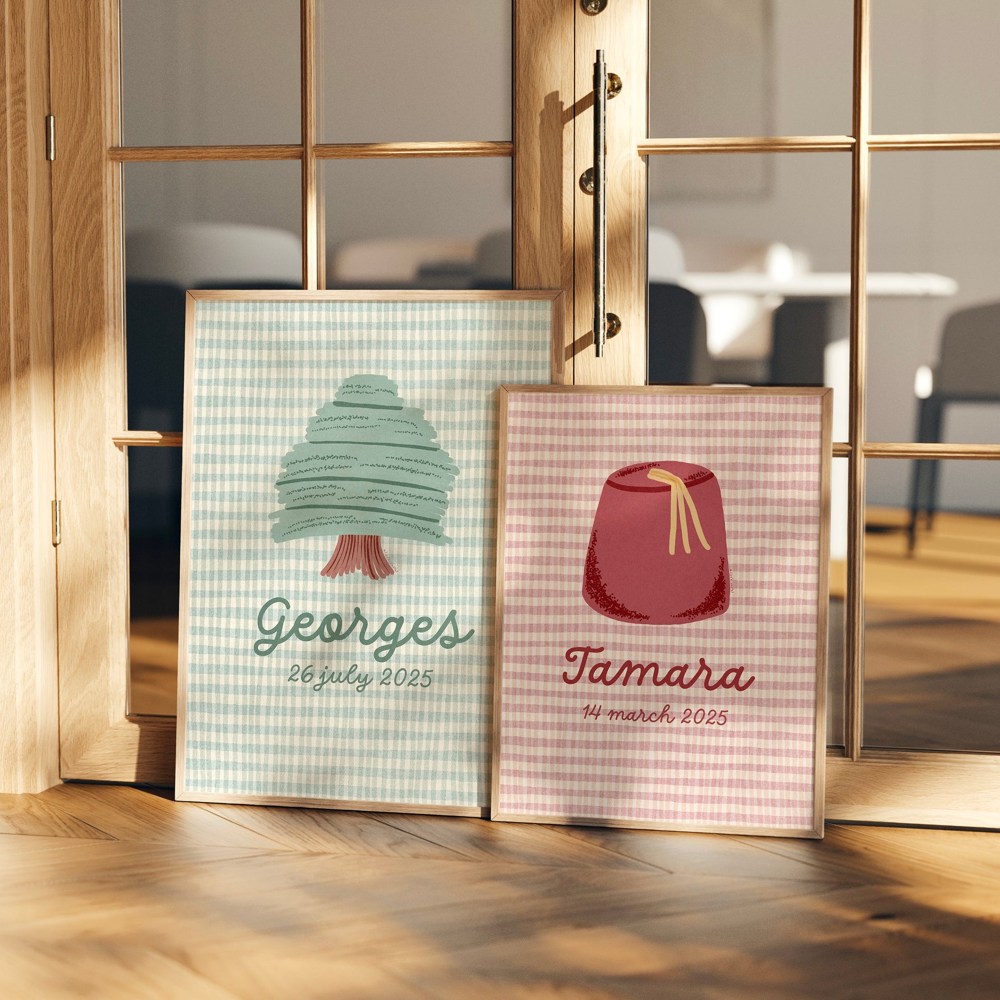 Inspirée du cèdre emblématique du Liban, cette affiche célèbre la force et l'héritage, un ajout précieux à toute chambre d'enfant. Personnalisez-la avec le nom et la date de naissance de votre enfant pour un souvenir qui restera gravé dans sa mémoire.