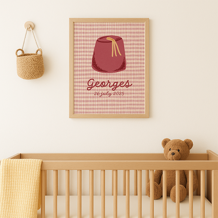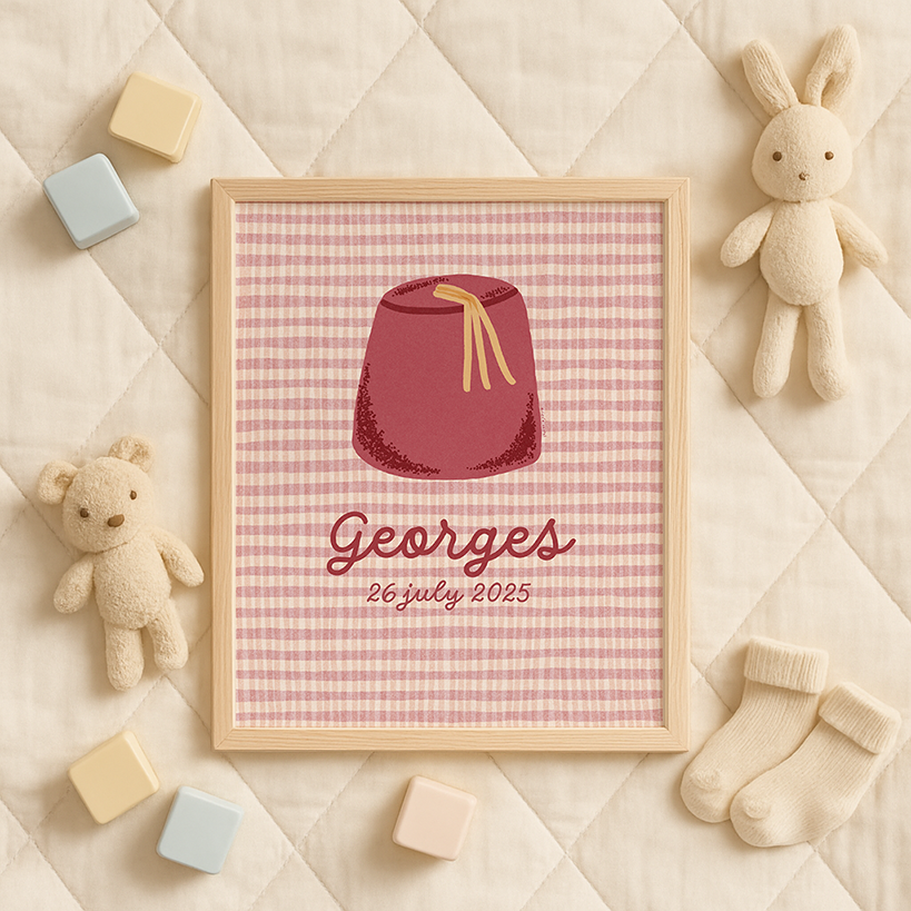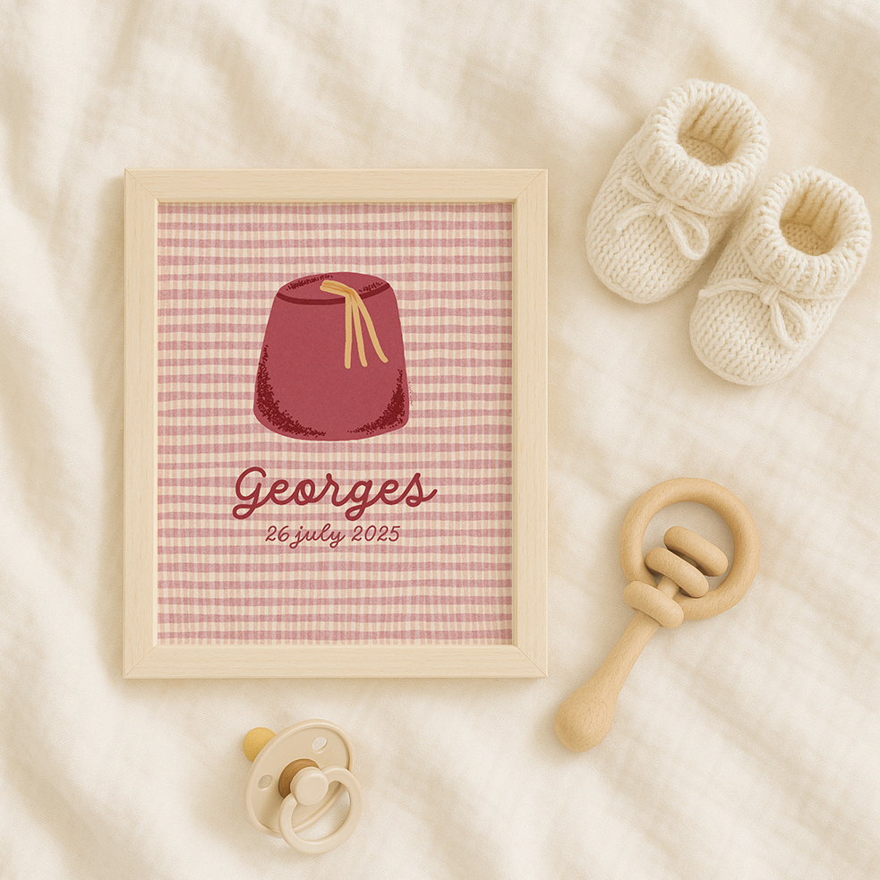 Un clin d'œil moderne à l'héritage libanais, parfait pour la chambre de votre bébé ou comme cadeau doux célébrant ses racines familiales. Personnalisez-le avec son nom et sa date de naissance pour un souvenir qui restera gravé dans sa mémoire.