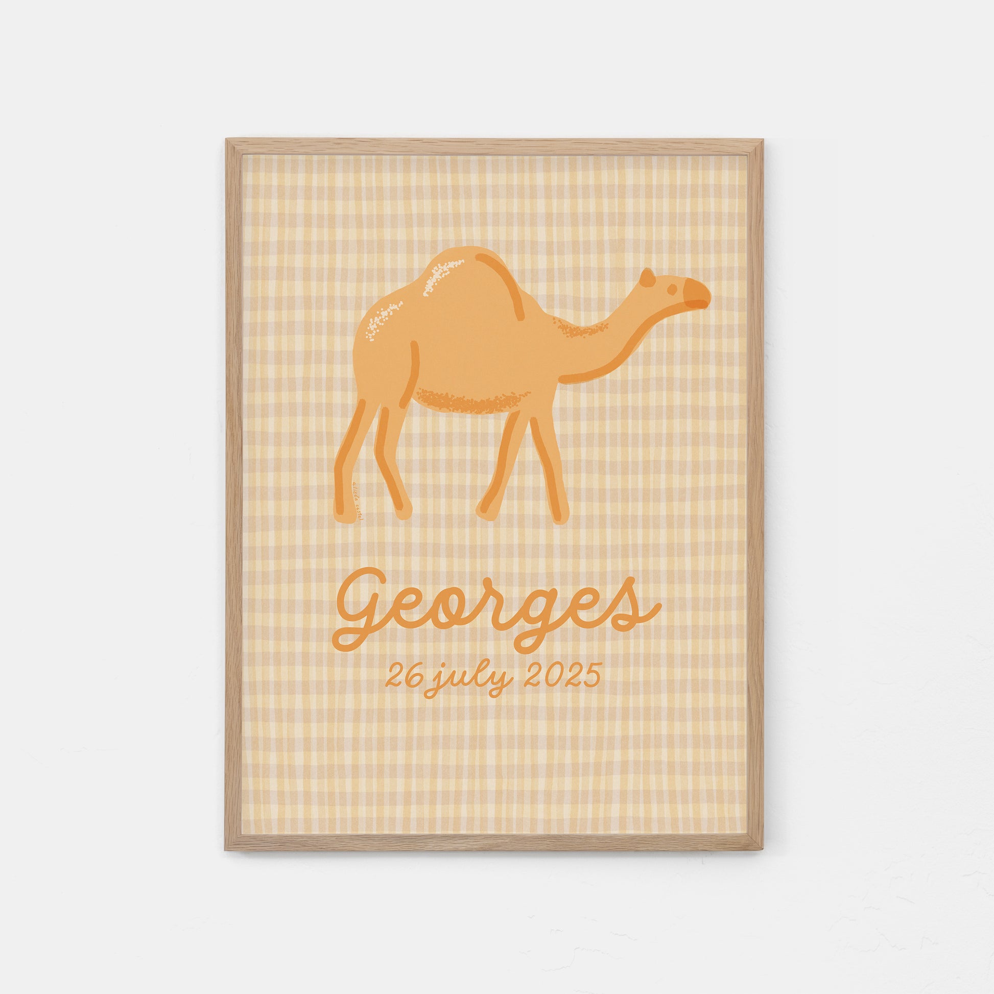 Pour les petites âmes curieuses, ce doux chameau apportera une touche d'aventure et de chaleur à la chambre ou à l'aire de jeu de bébé. Personnalisez-le avec son nom et sa date de naissance pour un souvenir qui accompagnera leur croissance.