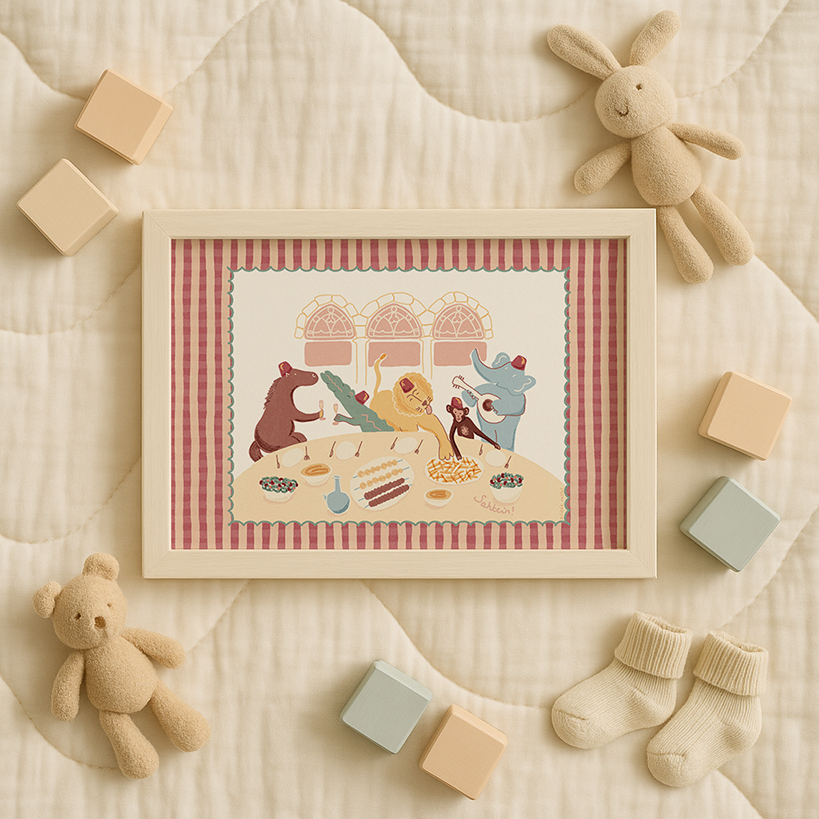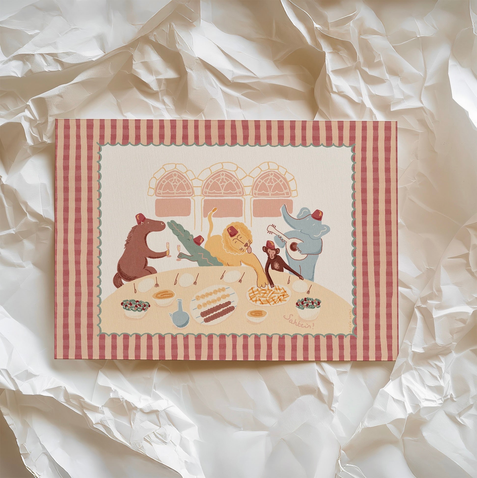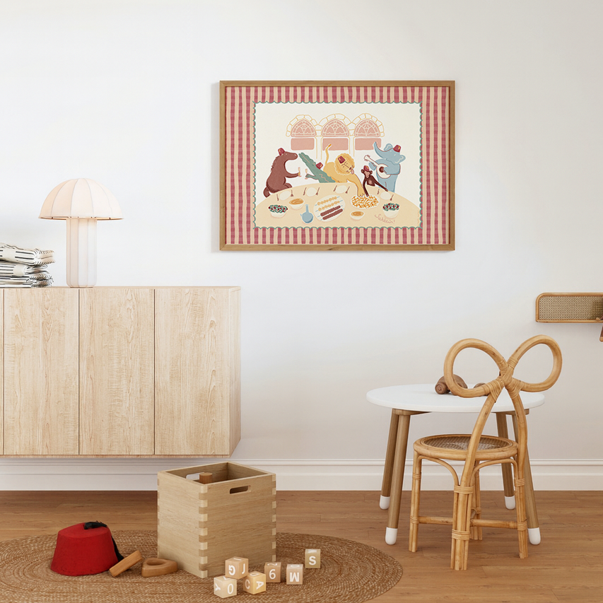 Sahtein ! Une ambiance conviviale, pleine de rires et de cuisine libanaise. Parfait pour apporter une touche de gaieté à la chambre de votre enfant ou pour offrir et faire plaisir à votre famille libanaise préférée.