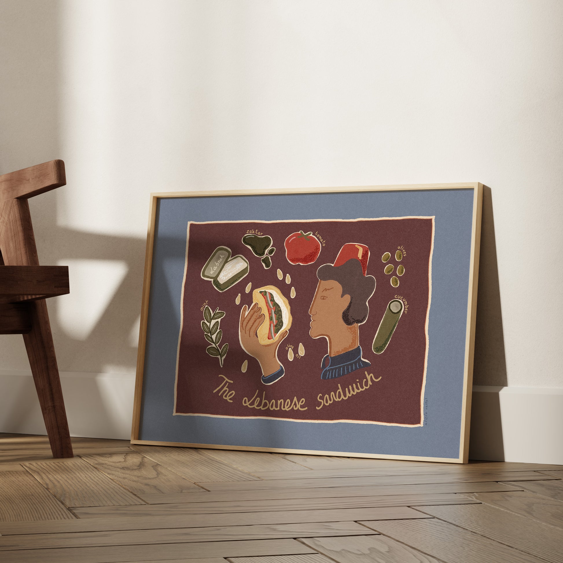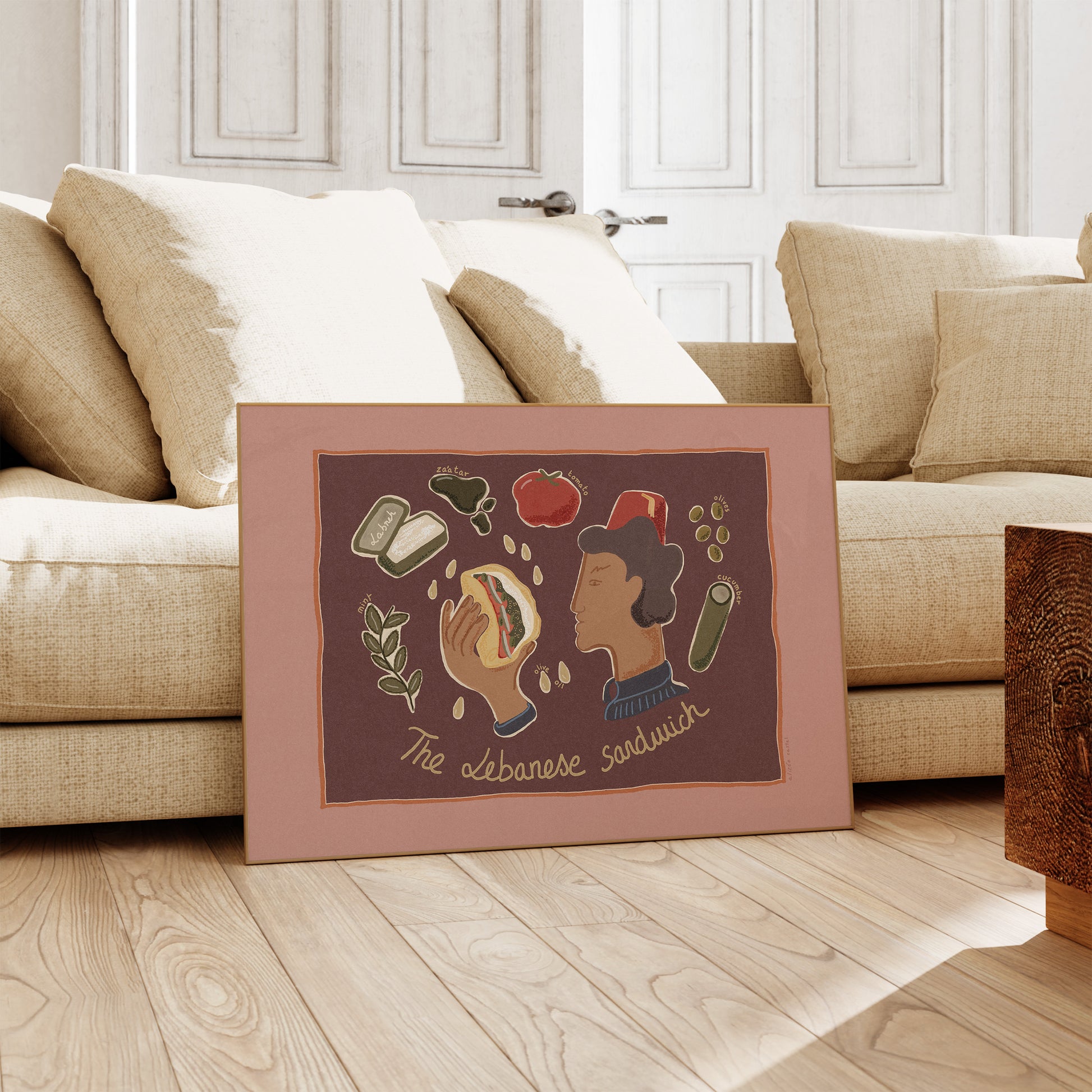Un hommage joyeux et nostalgique à la nourriture qui ressemble à la maison, parfait pour votre cuisine, votre coin repas ou comme cadeau attentionné pour tous ceux qui connaissent la magie du za'atar et du labneh.