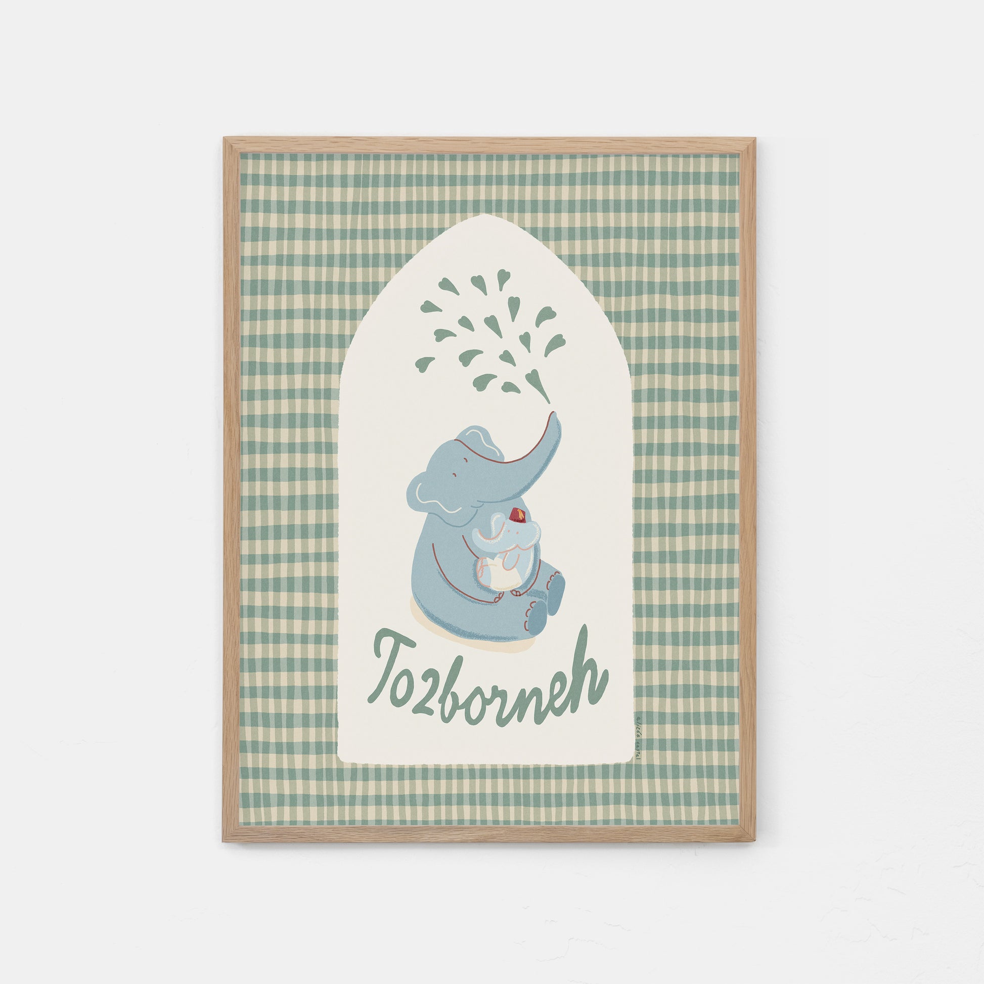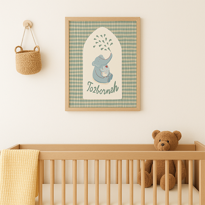 Une tendre illustration d'une mère éléphant tenant son bébé, une façon touchante de dire à to2borneh : « Tu es si précieux que je pourrais mourir pour toi. » Un cadeau intemporel pour les jeunes parents ou la première chambre de bébé, disponible en trois couleurs douces.