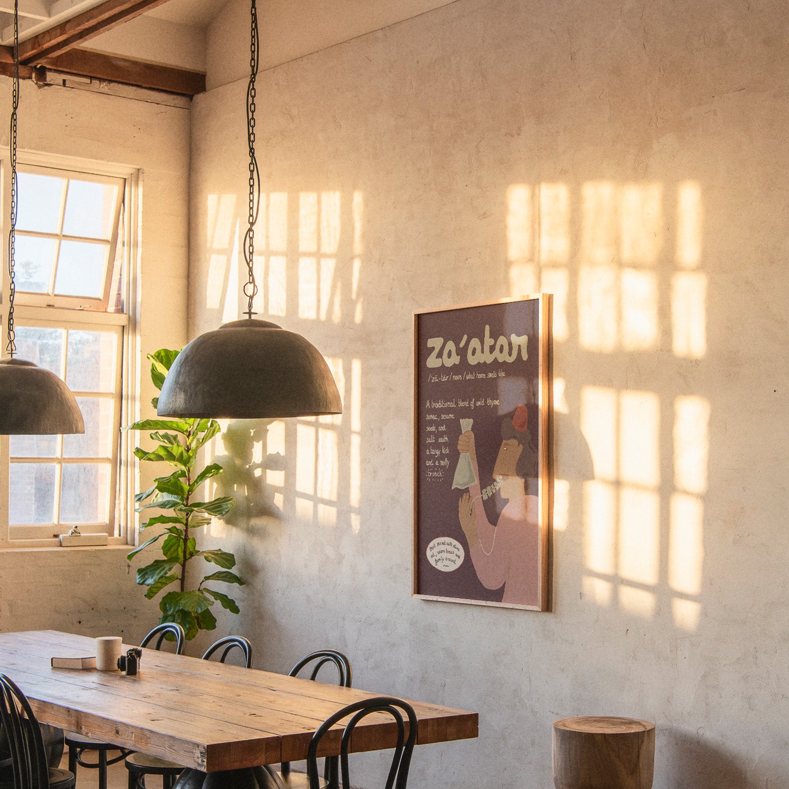 Cette œuvre capture l'essence du célèbre mélange d'herbes du Levant – un mélange de thym sauvage, de sumac, de graines de sésame et de sel – réputé pour son acidité, son croquant noiseté et ses racines culturelles profondes. Que vous ayez grandi avec le zaatar ou que vous en soyez tombé amoureux plus tard, cette estampe est un hommage aux saveurs, à la famille et au sentiment d'appartenance.